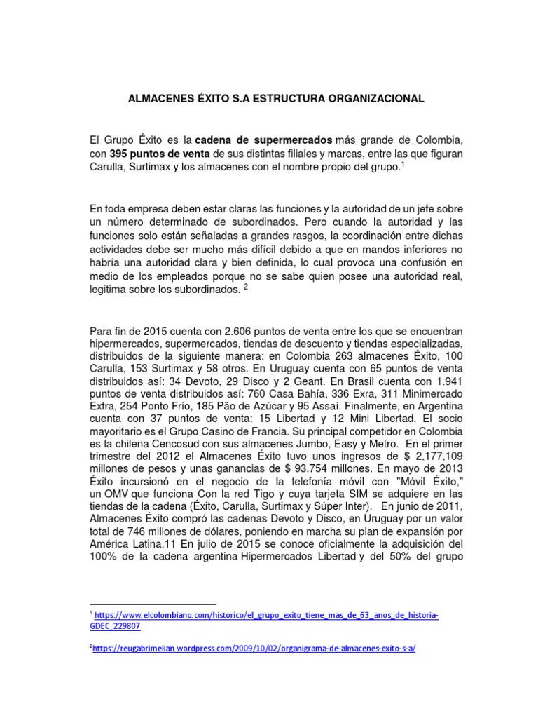 ALMACENES EXITO S.A. by angie vanessa barajas martinez from 0701.static.prezi.com Presentes en colombia con grupo éxito, en uruguay con los grupos disco y devoto y en argentina con grupo éxito niega que éxito simón bolívar haya sido un centro de tortura, así lo ratifican entes de control. Is the largest retailer in colombia, selling groceries and other supermarket goods, clothing and fabrics, home appliances, other home and personal care products, and a variety of home entertainment electronic and digital options. The company has more than 100 stores in different. Below is the information acquired on almacenes exito s a, which is not yet included in our research perimeter. Imagina que existe un lugar donde todas esas cosas que quieres son posibles y que cada. Almacenes éxito sa engages in the acquisition and operation of retail and wholesale business. Gestionamos de manera superior una corporación de negocios, con propuestas de valor diferenciadas y expresadas en surtidos pertinentes y emocionantes que anticipan y satisfacen los deseos de los. Enter a name to find & verify an email >>>.
