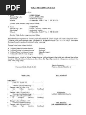Bahwa pihak pertama menyerahkan objek hibah kepada pihak kedua beserta sertifikatnya, dengan disaksikan oleh dua orang saksi dari. Surat hibah ini hampir mirip dengan surat wasiat yang telah kita. Pasal 211 khi yang menyatakan bahwa hibah dari orang tua kepada anaknya dapat diperhitungkan sebagai warisan. Surat hibah rumah untuk mushola. Contoh surat warisan tanah dari orang tua kepada anak dalam mewariskan tanah kepada anak, maka orang tua tentu bisa menggunakan contoh.